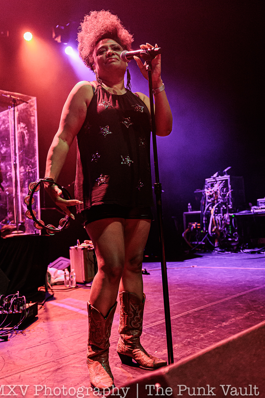 The Bellrays were up first. Formed in 1990, this band is a really unique blend of rock, garage, and soul music. Lead singer Lisa Kekaula has an amazing soulful voice. Think of those great gospel singers and how great their voices are, but remove the religious lyrics and you’ll understand what I mean. She commanded the stage as the band blazed through an enjoyable set. I’ve never heard anything like them, they really stood out as really unique and kind of special and they were well worth showing up early for Wednesday night.